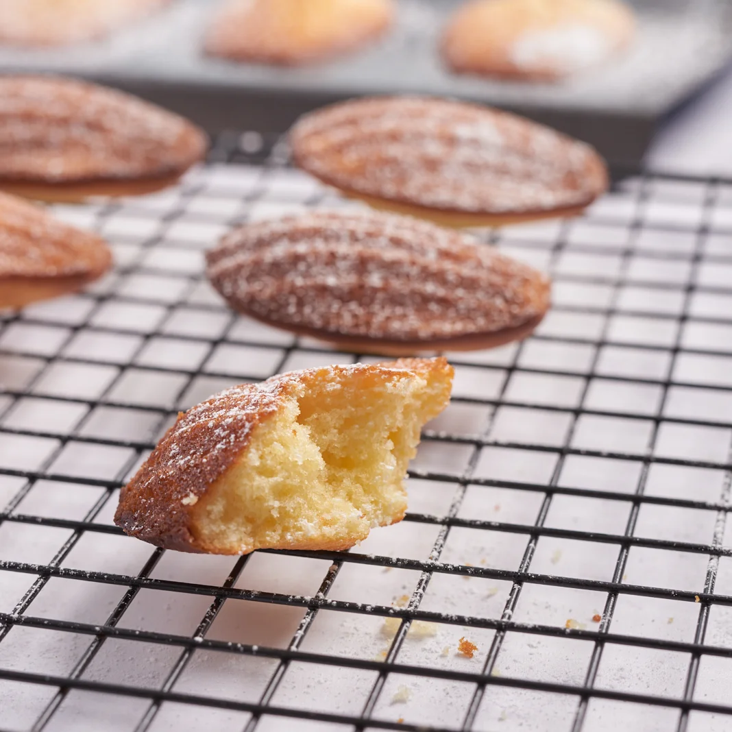 Leave to stand for 20/30 minutes, in the fridge if you have space, before adding to the madeleine tray. A note on the baking tray - I don’t butter or grease mine because I have never needed to and I think the butter makes the outside too crispy, your choice though!
